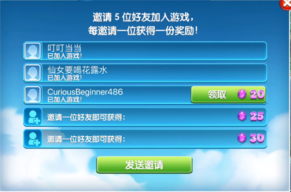 4、如果是你一个设备注册账号领取钻石,尽可能通过点击你复制到备忘录的那个邀请链接进入游戏