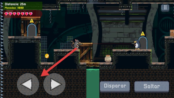 2、进入游戏场景后,通过左下角的左右方向键控制角色移动,躲避障碍、接近敌人或收集金币。