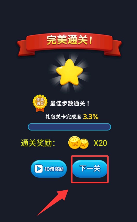 3、恭喜你,通关了,点击红色框框里的下一个继续。
