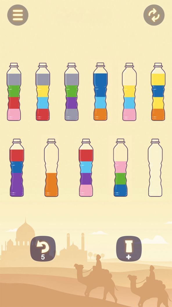 1、每一关瓶子的数量和颜色都不相同,你要根据实际的情况来进行排序。