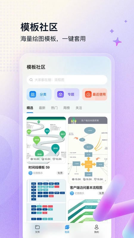 支持作品搜索、收藏、个人作品云端同步到移动设备等功能,让您不受任何限制地工作和学习。搜索热门榜单、热门作品和周线图,帮助您全面、及时地了解工作趋势,让您在工作场所领先一步!
