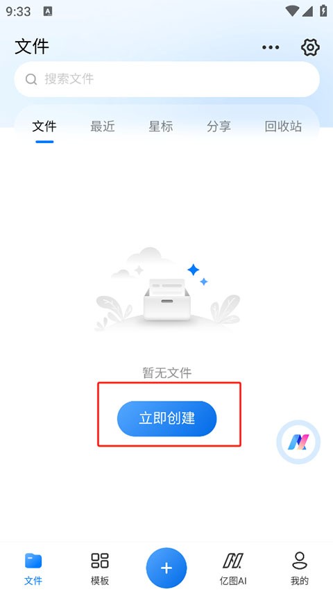 1、进入亿图图示app官方版后,点击中间创建文件。