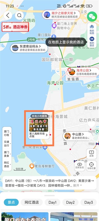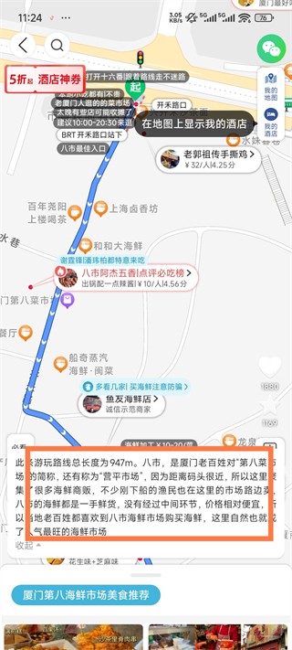 5、点开推荐行程中的卡片就可以看到一个非常直观且详细的路线图,起点和终点很清晰,不走冤枉路。开启定位权限,在旅行中可以直接当导航用