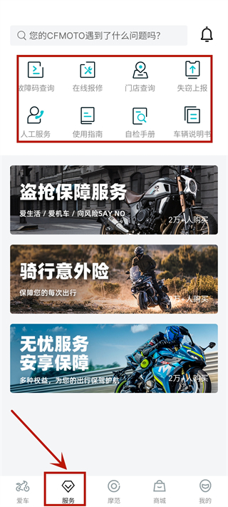 cfmoto是一款好用的摩托车服务软件,软件专门为摩托车用户所设计,含有各种摩托车相关的服务,软件可以方便用户查看摩托车的使用状况,各种的数据都可以在软件中查询到,除了查询功能以外,软件也是一个摩托车社区,摩托车用户可以在软件中进行信息的咨询和交流,同时也可以向志同道合的用户发送邀请,一起进行户外的骑行,十分好用。