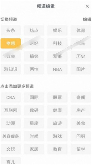 2、进入频道编辑页面,用户可以进行自由切换频道,同时还可以添加更多的频道哟;