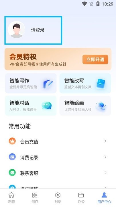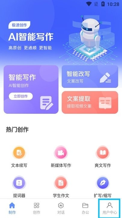 2、可以在这里让AI带给你写作的灵感,每天在这里都可以自由进行AI生成。