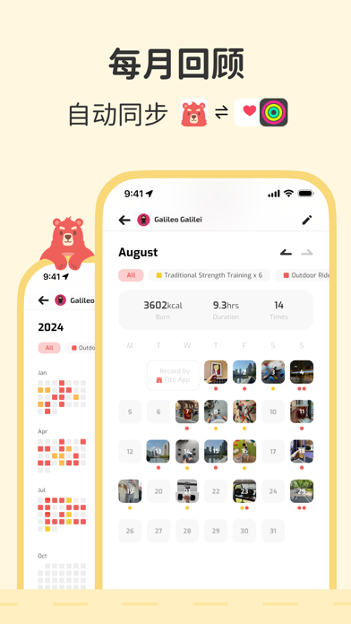 2. 月度回顾:通过精美的日历设计展示你的运动记录,留下照片回忆和朋友分享;