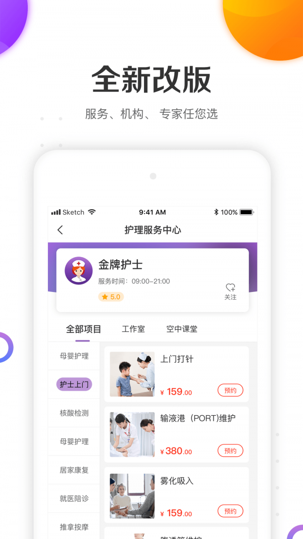 2、专业的护士将会通过线上接单、线下服务的模式为您提供专业护理服务。