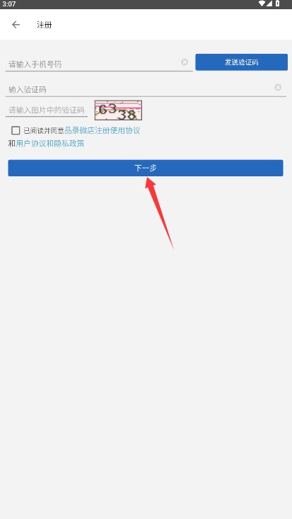3、准确输入手机号码并完成双重验证码识别,点击下一步进入资料完善环节。