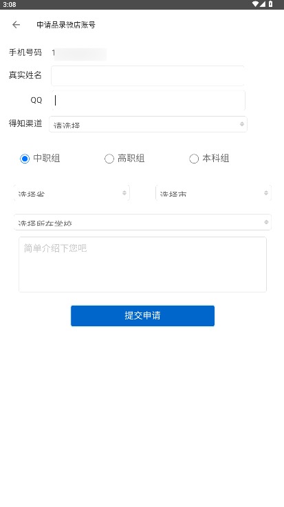 4、填写真实姓名、QQ账号及获知渠道,选择所在城市与学校后提交申请完成注册。