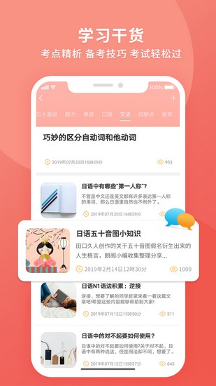 3、日语单词训练:庞大的日语单词库,涵盖日常生活、商务、旅游等场景。通过智能记忆算法个性化推荐学习计划,让你的单词记忆更高效。